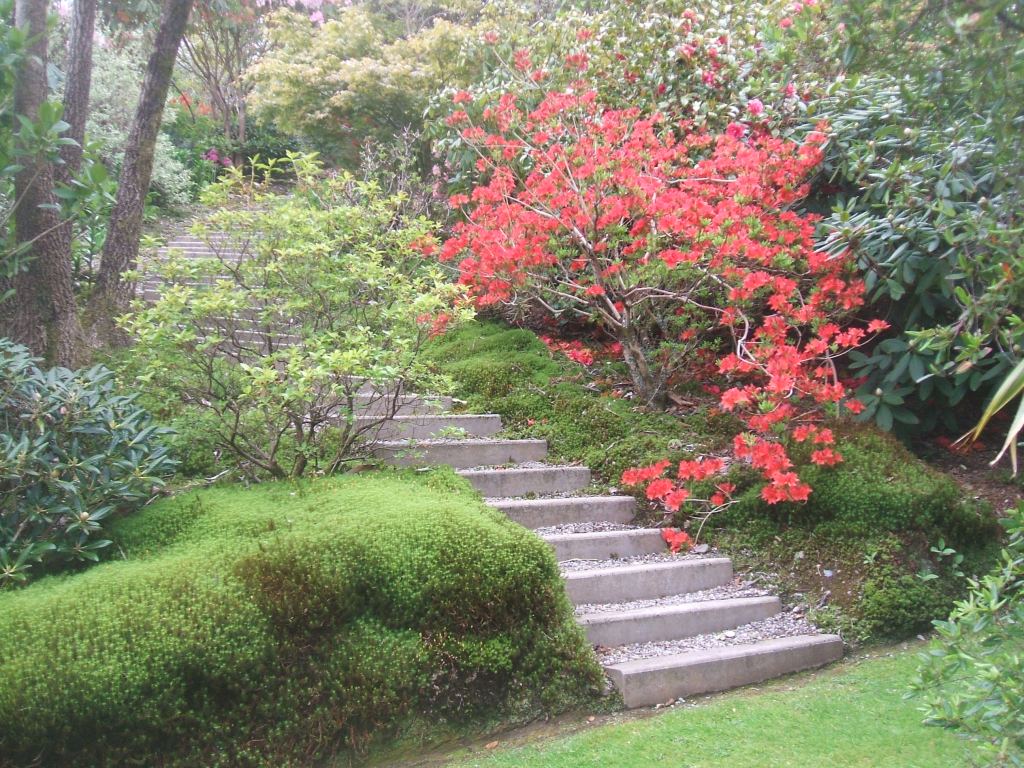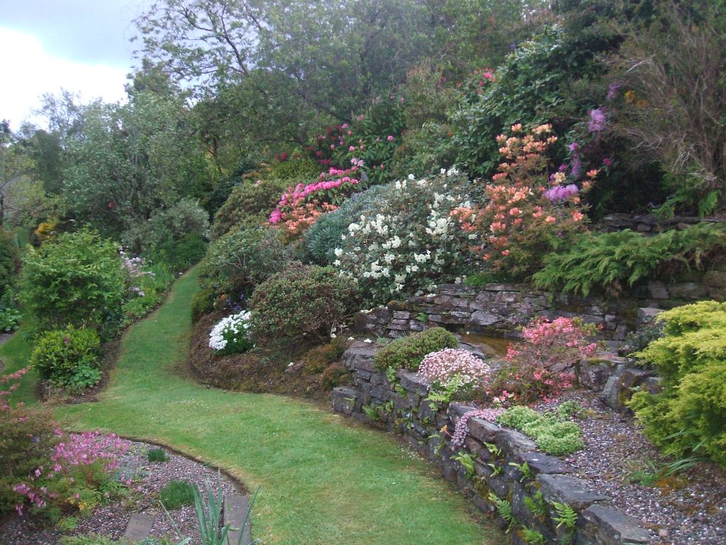 The garden is built on a slope so there are steps and narrow paths in places. As all paths are grass, wheelchair access is limited except in very dry weather